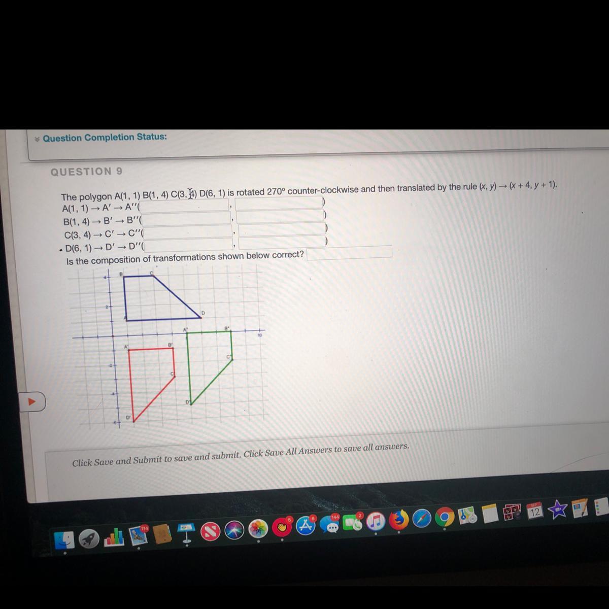 B'(4, - 1 ) → B''(4 + 4, - 1 + 1 ) → B''(8, 0 )