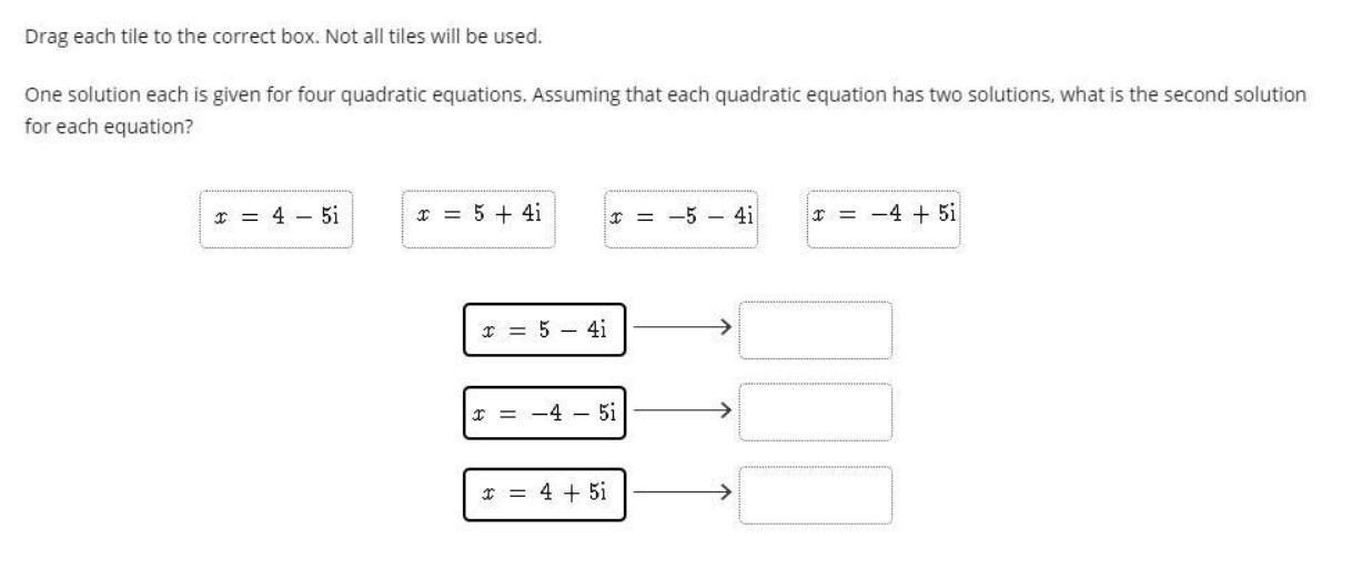for the equation is, x = -4 - 5i