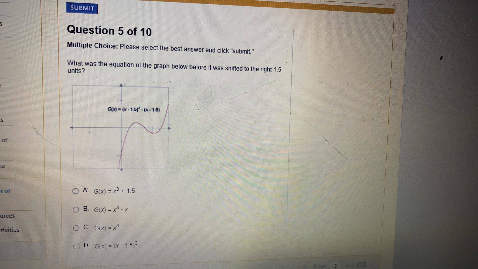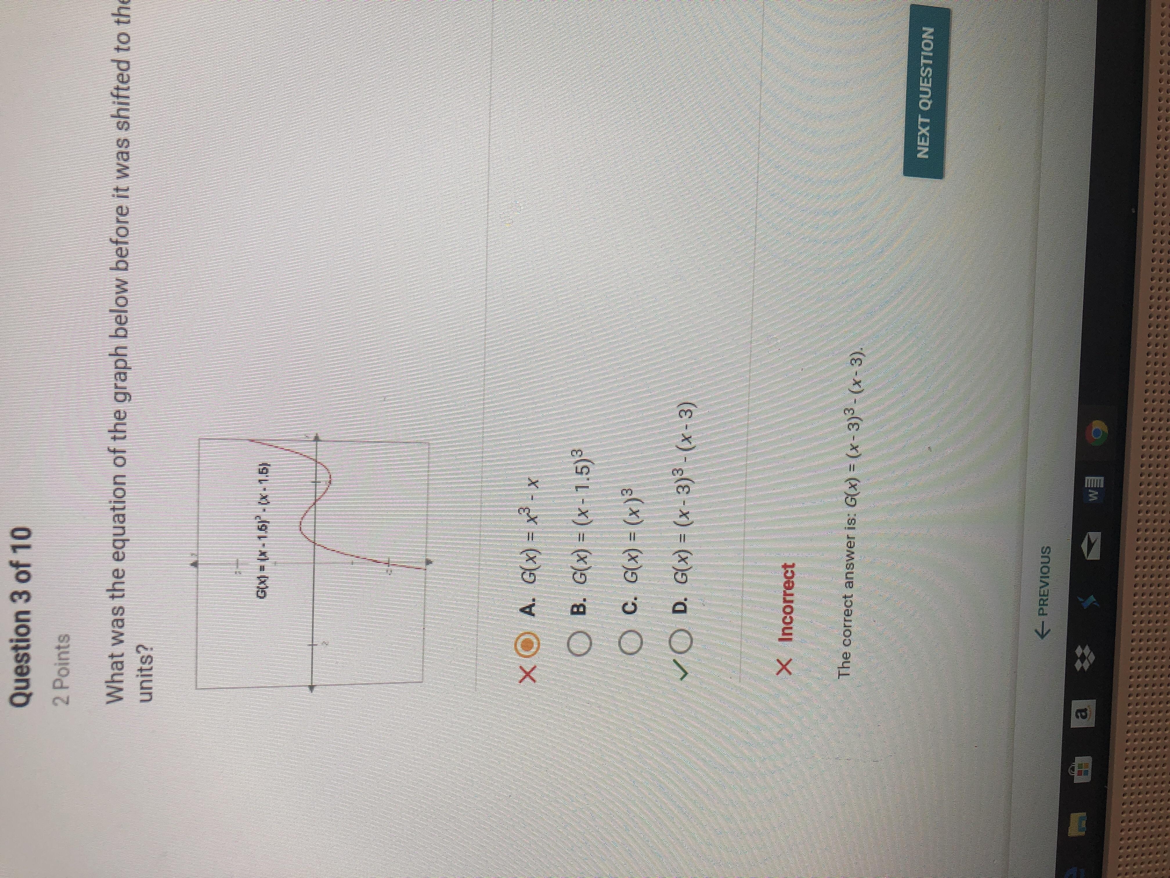 We are given a graph of cubic polynomial after shift 1.5 unit right.