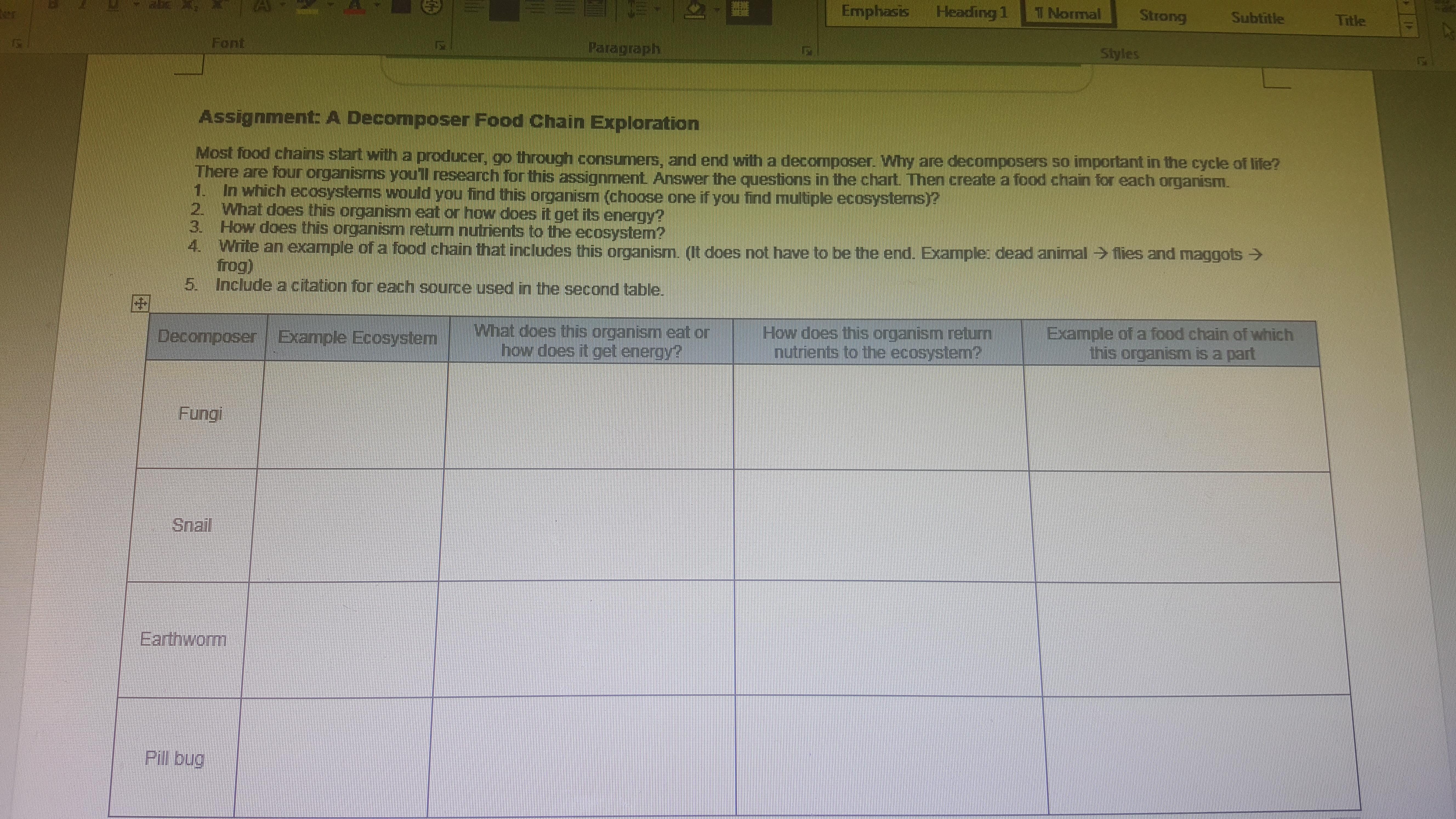 Soil containing plant remains ⇒ pill bug ⇒ bird ⇒ hawk