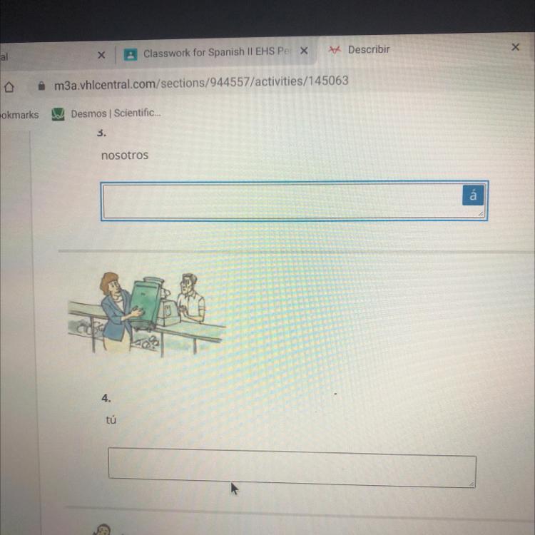 Answer: the first one is tu, the second is yo, the third is el,and the third one is usted