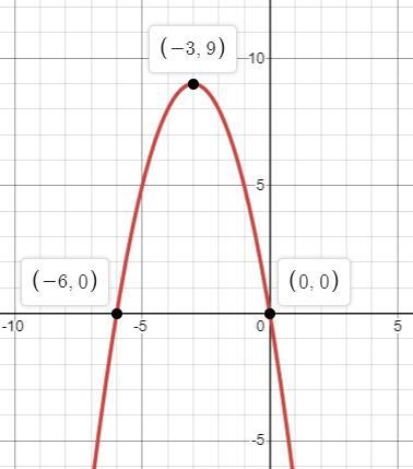 Use the quadratic function f(x) = -x^2 - 6x. The parabola faces downward with y -intercept (-3,9) and zeros (-6,0) and (0,0). See the attached graph.
