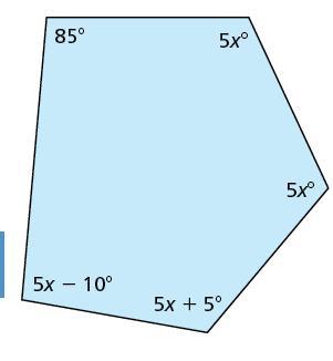 540° = 85° + 5x° + 5x° + 5x + 5° + 5x - 10°