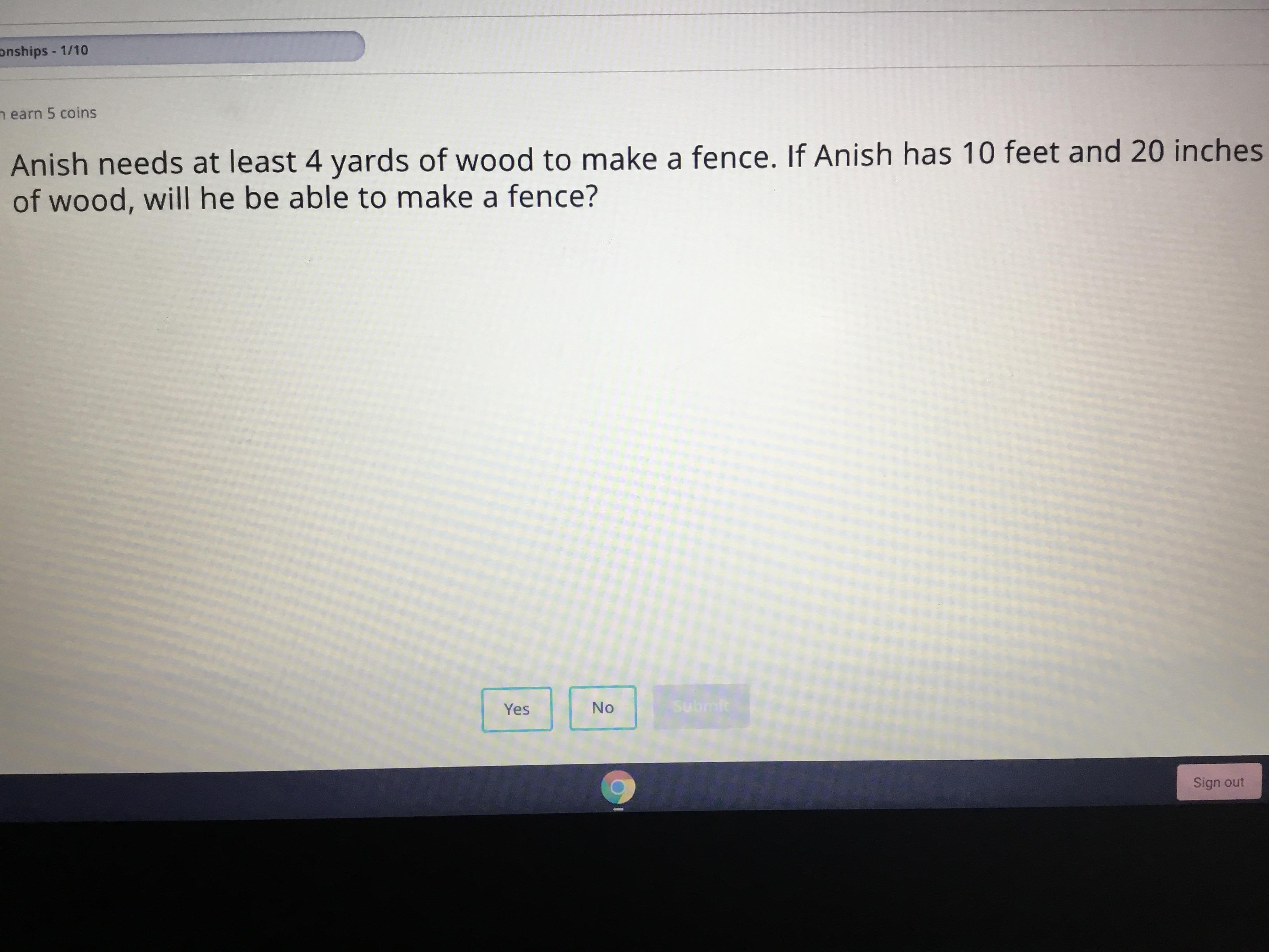 First convert 10 feet to yards and also 20 inches to yards.