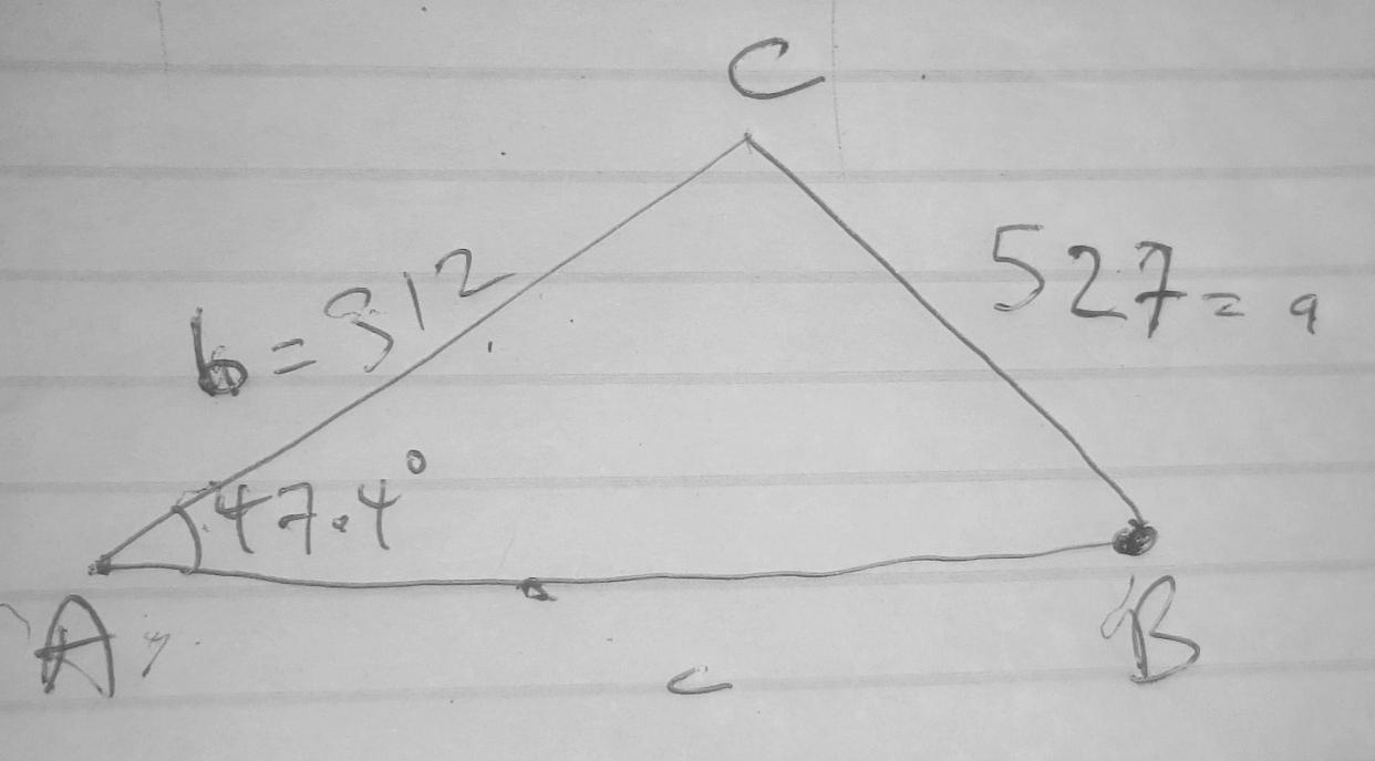 [527/sin 47.4°] = [312/sin B]
