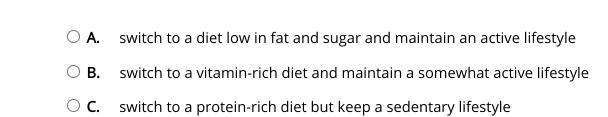 A. switch to a diet low in fat and sugar and maintain an active lifestyle.
