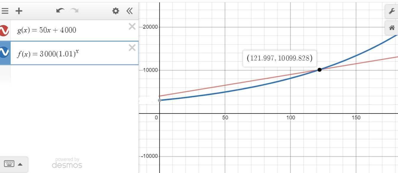 Remember that the solution of the system of equations is the intersection point both graphs