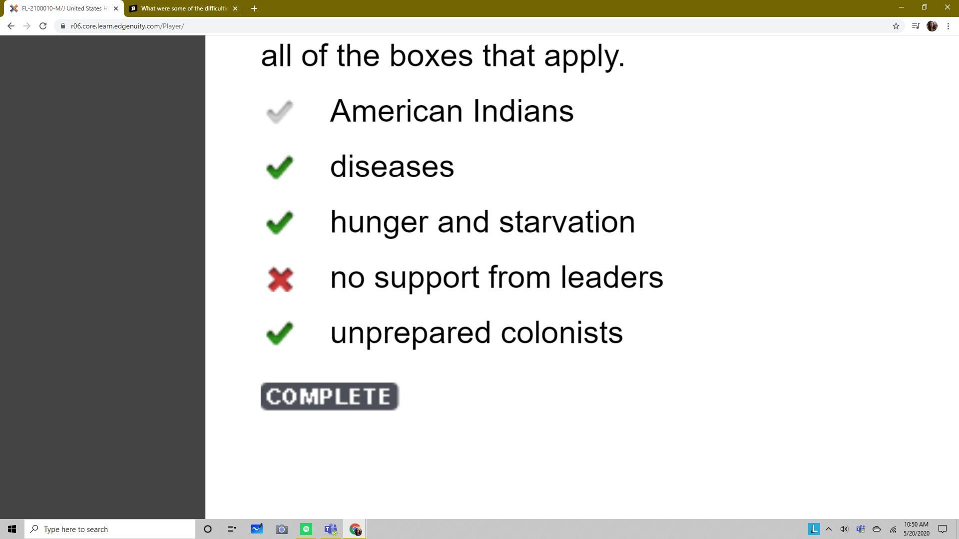 What were some of the difficulties the colonists of Jamestown encountered in the first few years? Check All That Apply