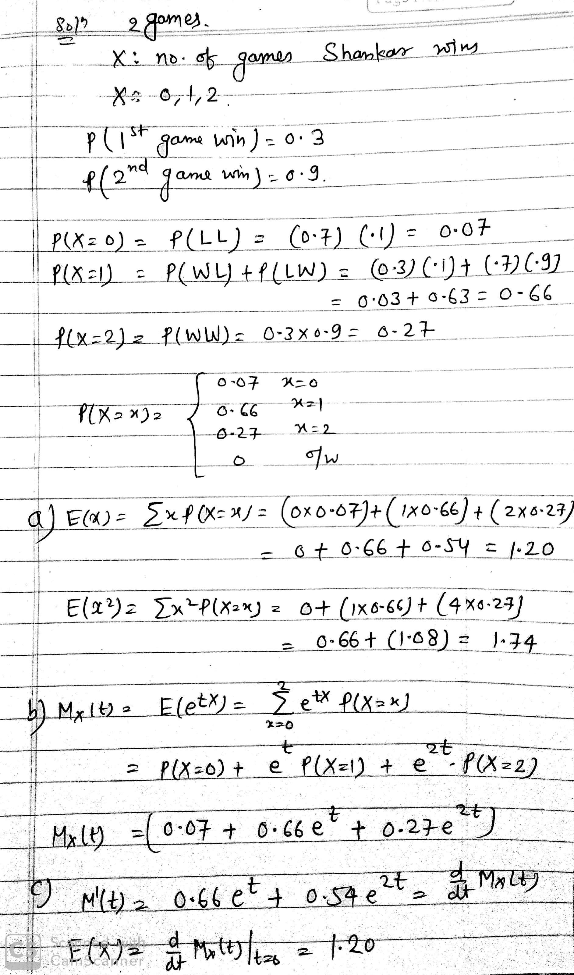 If X is the number of games shankar wins, the sample space for X is [0,1,2], as he can win none, on or the two games.