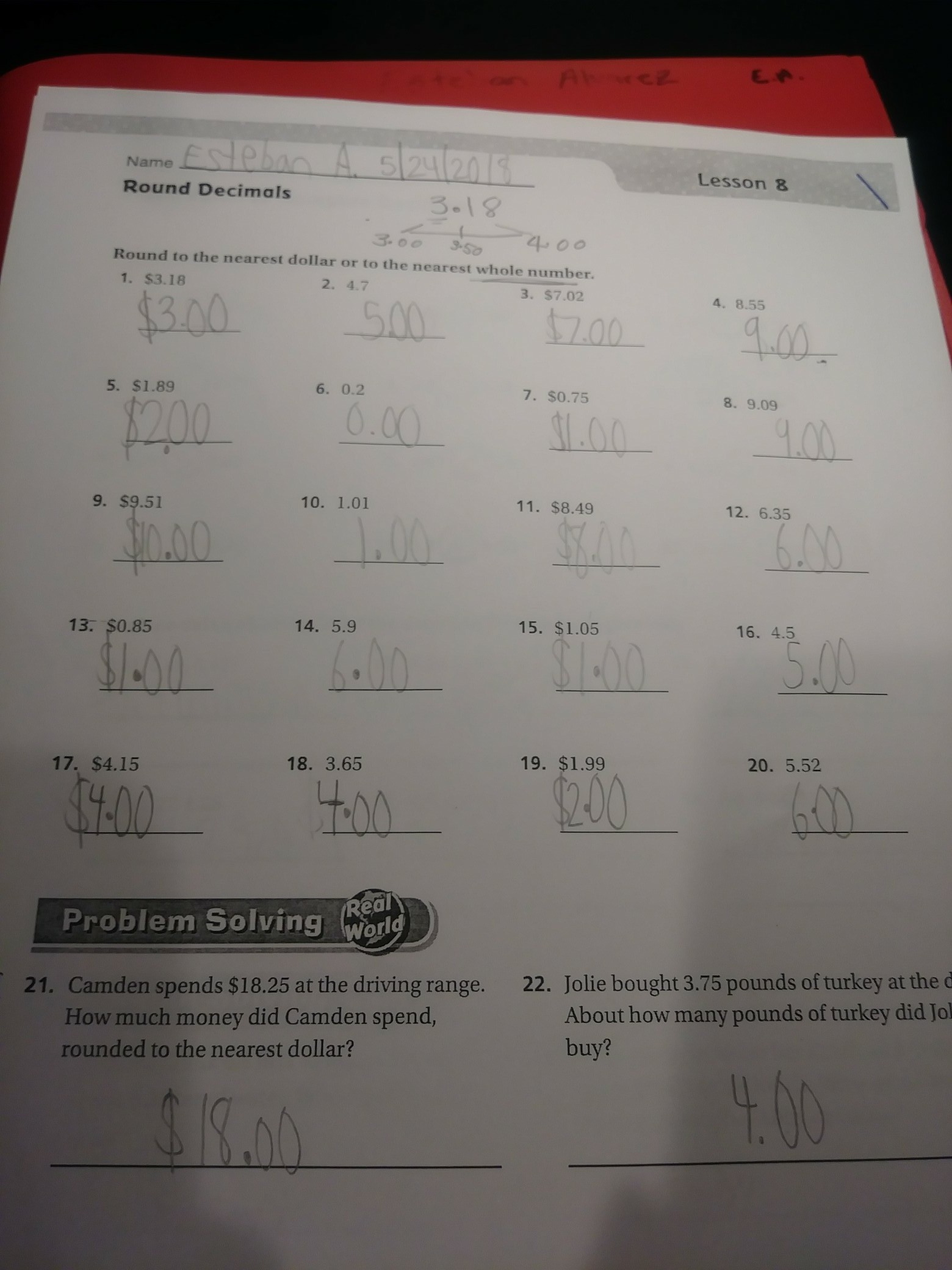 You got all these right. Great job Esteban! I'm sure you'll be moving on to 5th grade. Hope this helps :)