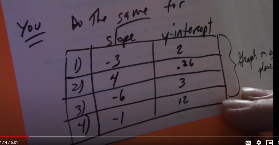 graph a line stating at y = -4 and going up (rising) to the right ONE Y Unit for every FOUR X units (the run)