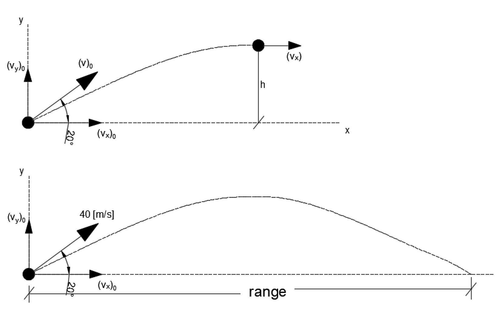 Conociendo la velocidad inicial del proyectil y el angulo de lanzamiento con respecto ala horizontal.