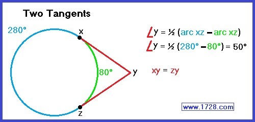The tangents would intercept a major arc (204) and a minor arc (156).