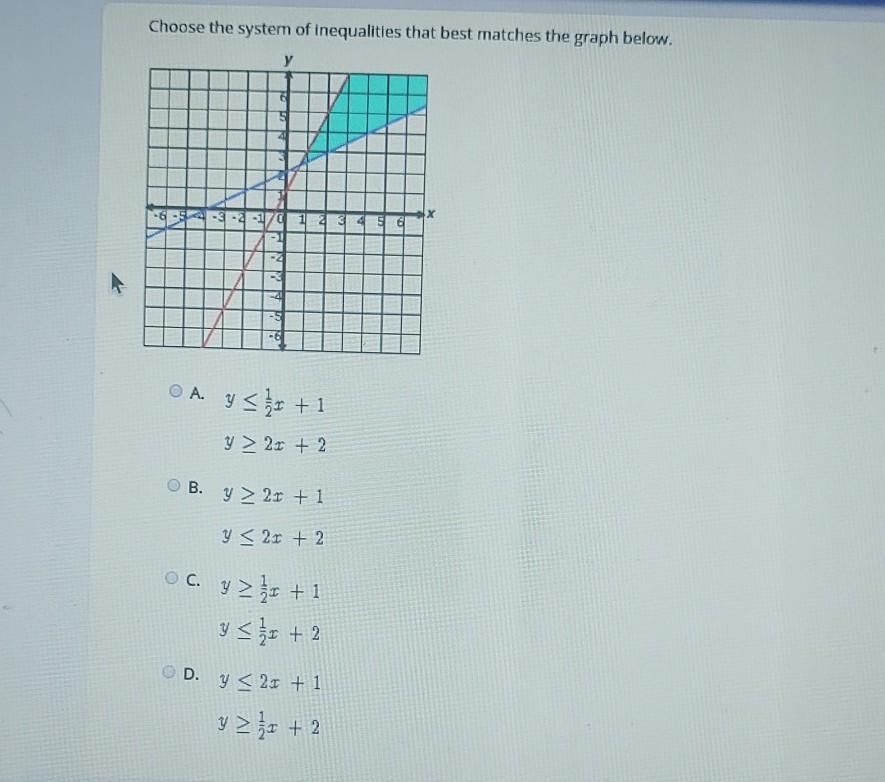 Notice that our y-intercept of our red line is (0, 1). Therefore, substitute 1 for b and 2 for m. This yields: