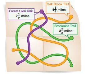 miles long and the distance from the trail to the end and back can be calculating by adding this distance twice. The distance is a mixed fraction and we need to convert it into a simple fraction to add it.