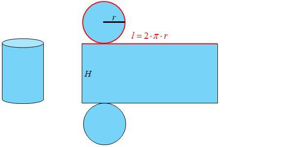 The two circles that make up the ends of the cylinder. The side of the cylinder, which when "unrolled" is a rectangle In the figure above, drag the orange dot to the left as far as it will go. You can see that the cylinder is made up of two circular disks and a rectangle that is like the label unrolled off a soup can.