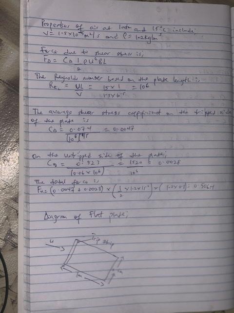 In this question, we are asked to calculate the total drag force on a plate which is oriented parallel to an air flow at a particular temperature and atmospheric pressure.