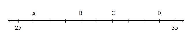 Which expression represents the opposite of the coordinate for the point between B and C?