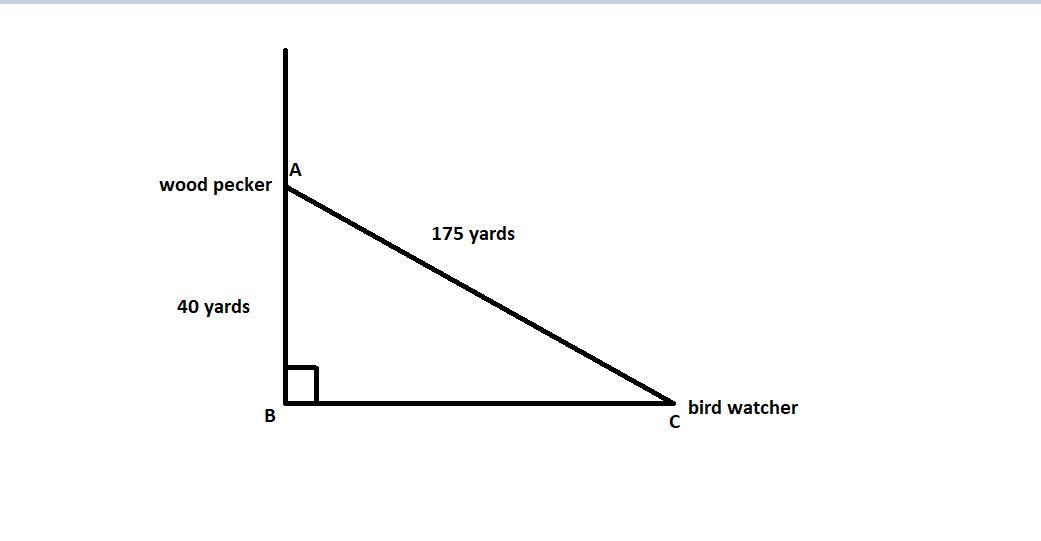 A bird watcher spied a woodpecker. The bird watcher is 40 yards lower than the woodpecker. The distance from the bird watcher to
