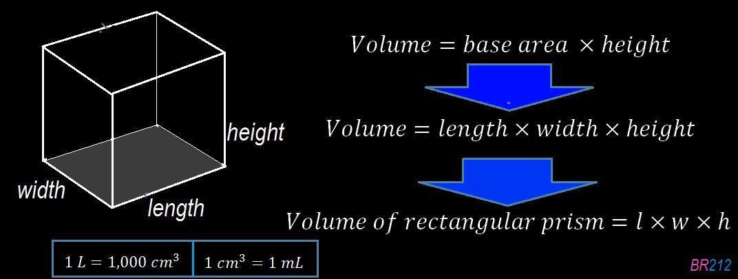 \boxed{ \ V = length \times width \times depth \ }