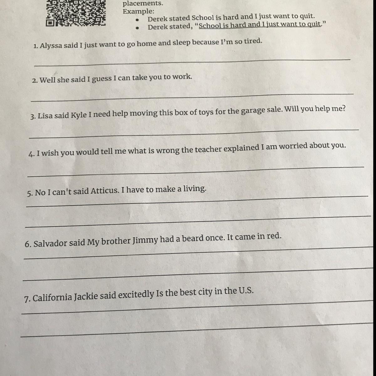 1. Alyssa said, "I just want to go home and sleep because I'm so tired."