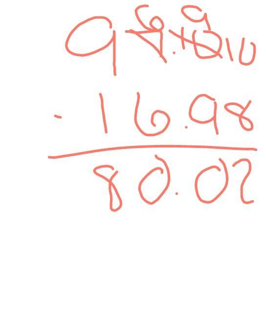 97 - 16.98  = 80.02