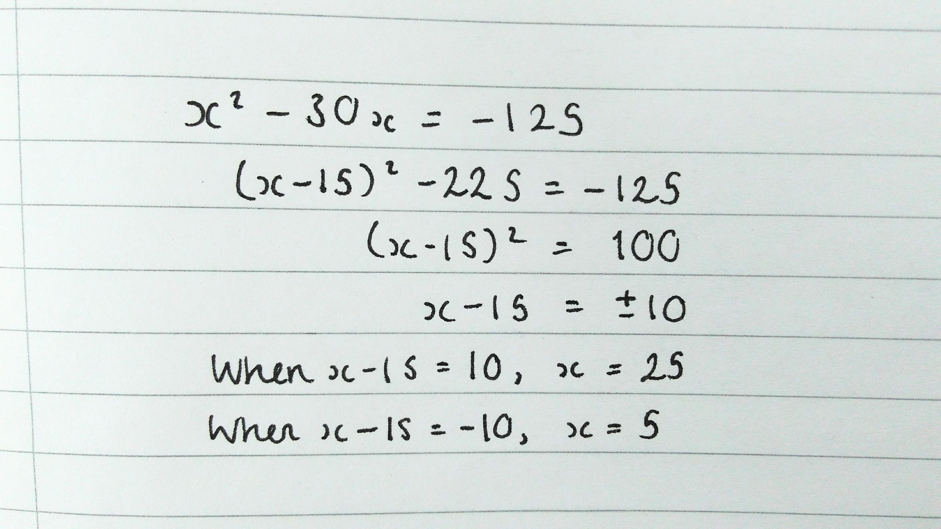 <em>Note: </em><em>The reason why we don't have to subtract it from both sides is because the original equation is </em><em>x² - 30x = - 125</em><em>, and so we must make sure the left hand side is still equal to </em><em>x² - 30x</em><em>.</em>