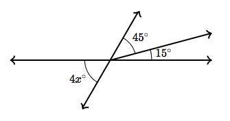 1) 4x°= 45° +15° (vert. opp angles)