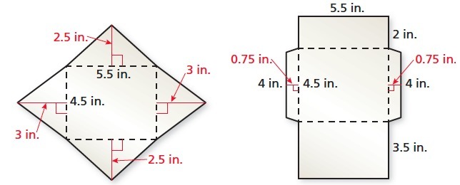 Added together, the area of the first envelope is 52 in squared.