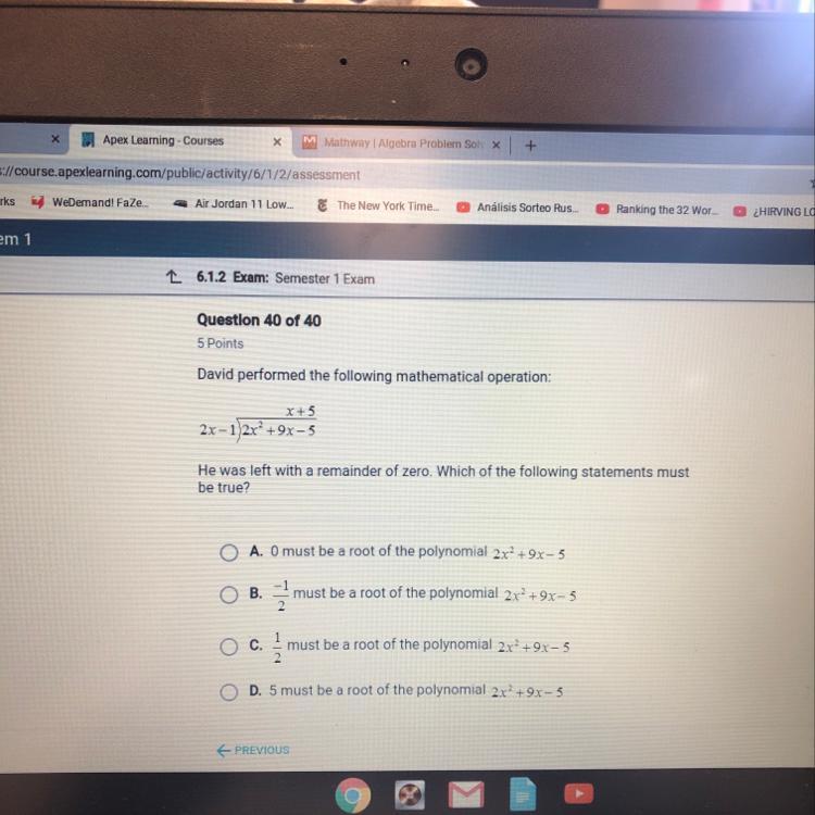 It is given that when David divide the above polynomial by (2x-1), then he get