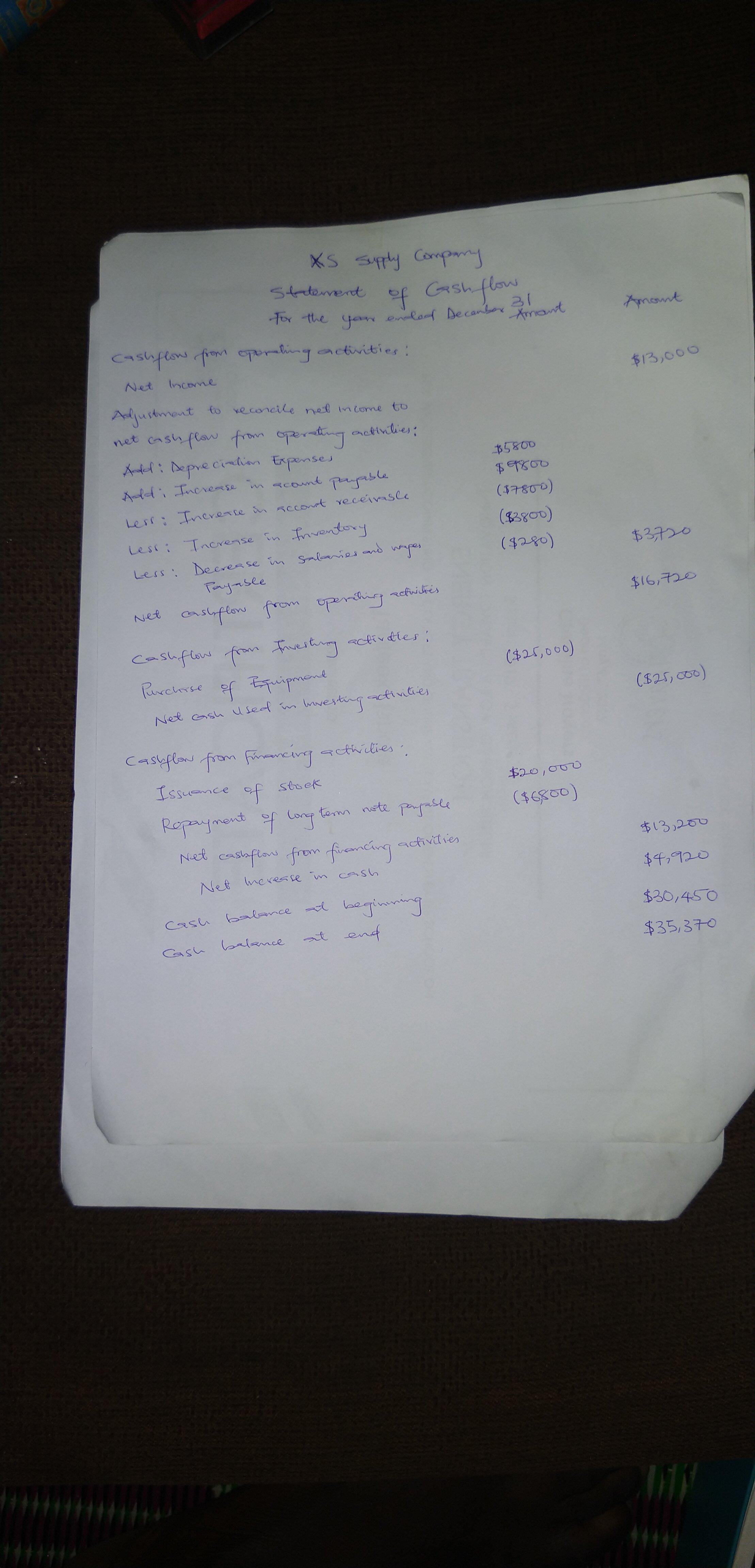 Kindly check attached picture for detailed statement of cash flow