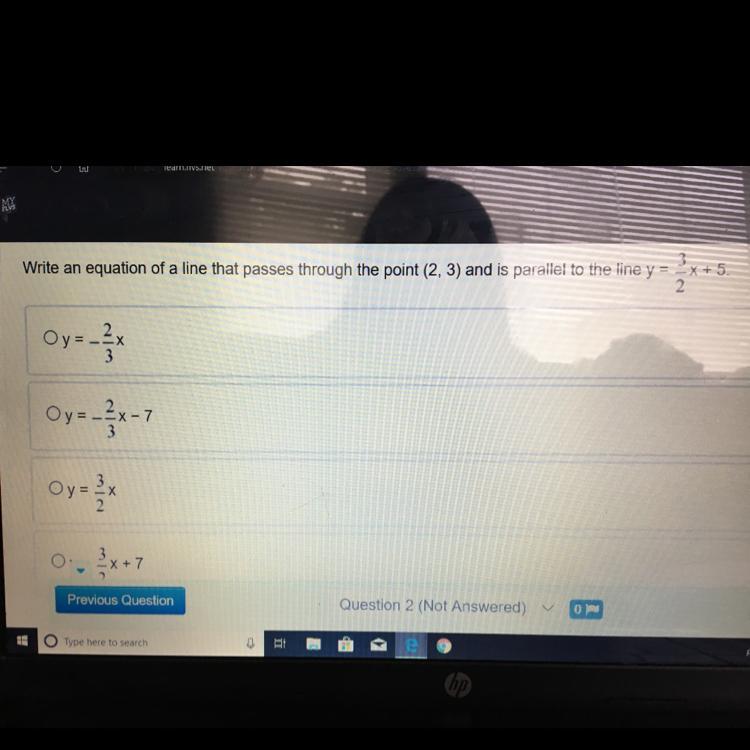 If 2 lines are parallel, they have the same slope. That narrows it down to the last 2 options.