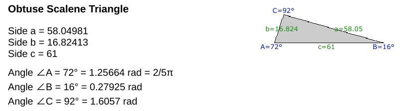 a = c·sin(A)/sin(C) = 61·sin(72°)/sin(92°)