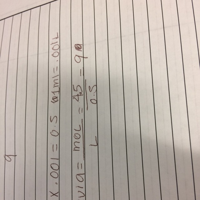 500mL = 0.500L * (0.100mol/L) = 0.0500 moles HF