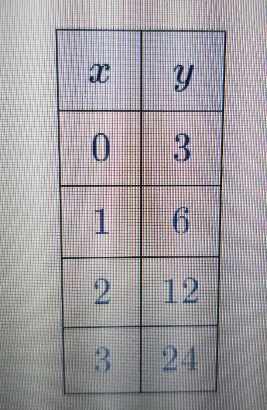 We can therefore conclude that the equation of the exponential function represented by the table above is