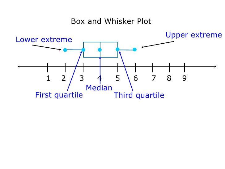 See how there are two boxes containing three dots on a box and whisker plot. The first quartile is the dot right on the beginning of the first box. On this plot it is 42.