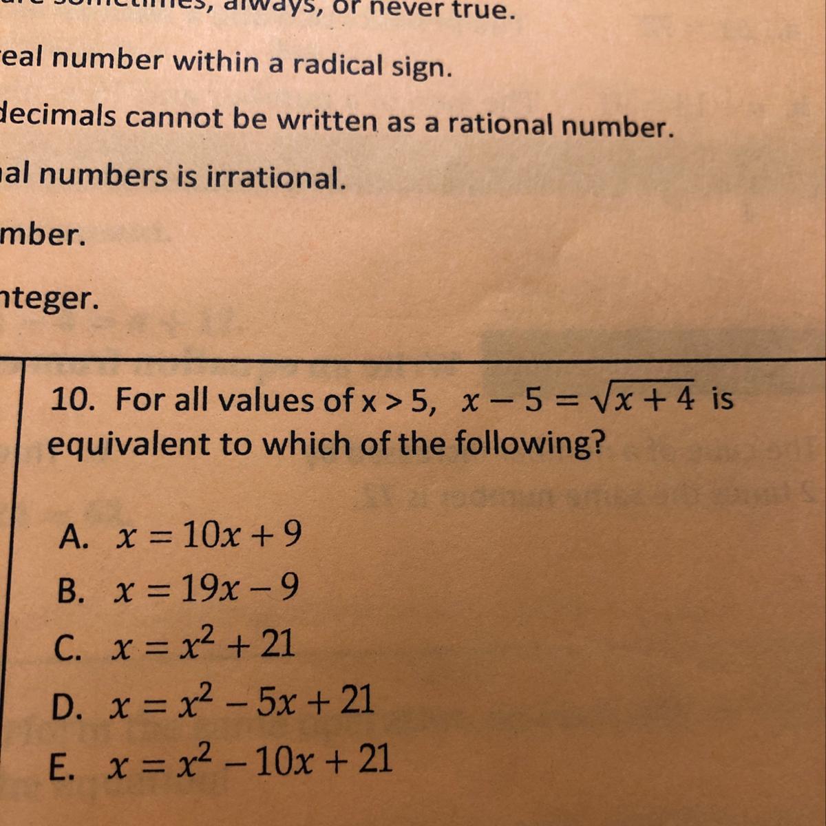 1. 6x + 10 = 6x - 8