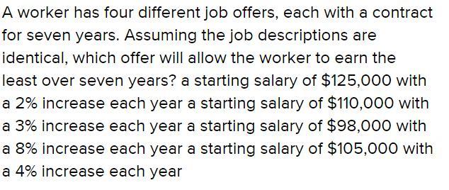 A worker has four different job offers, each with a contract for seven years. Assuming the job descriptions are identical, which