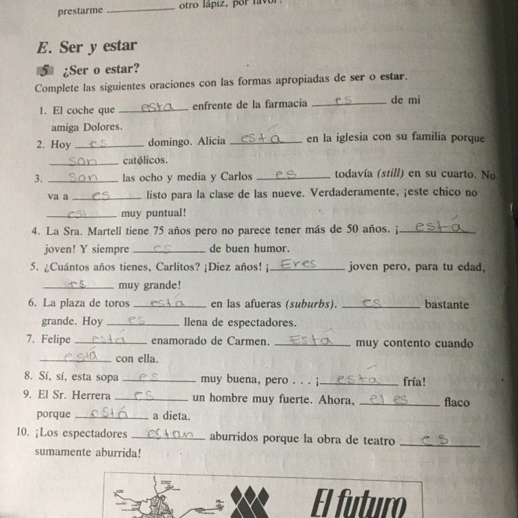 Complete las siguientes oraciones con las formas apropiadas de ser o estar.