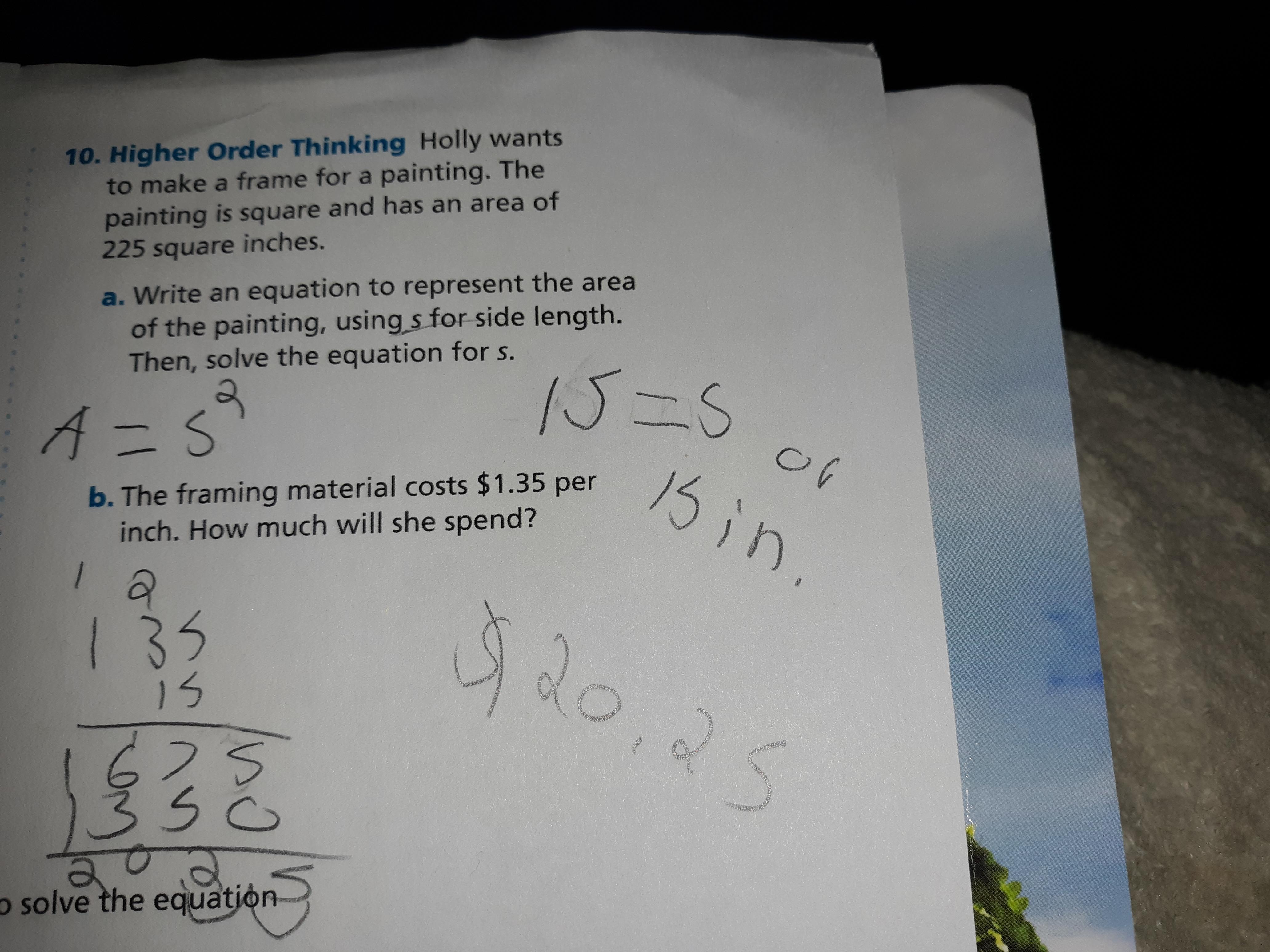 Solve this for s to get the side length