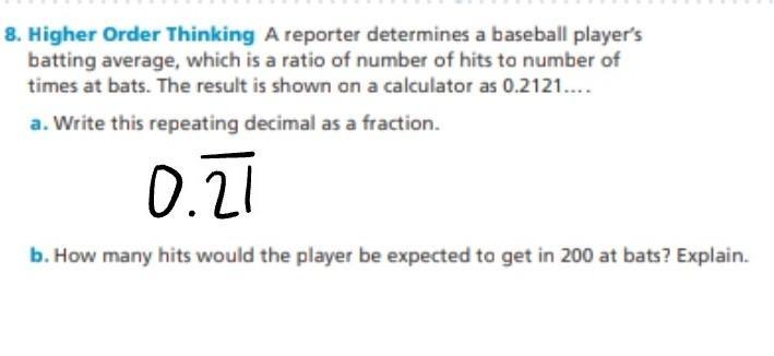b. x hits : 200 bats = 0.212121..