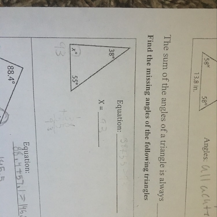 *If you want to check your answer you can do 38+55+87 and it should equal 180 because all triangles add up to 180.