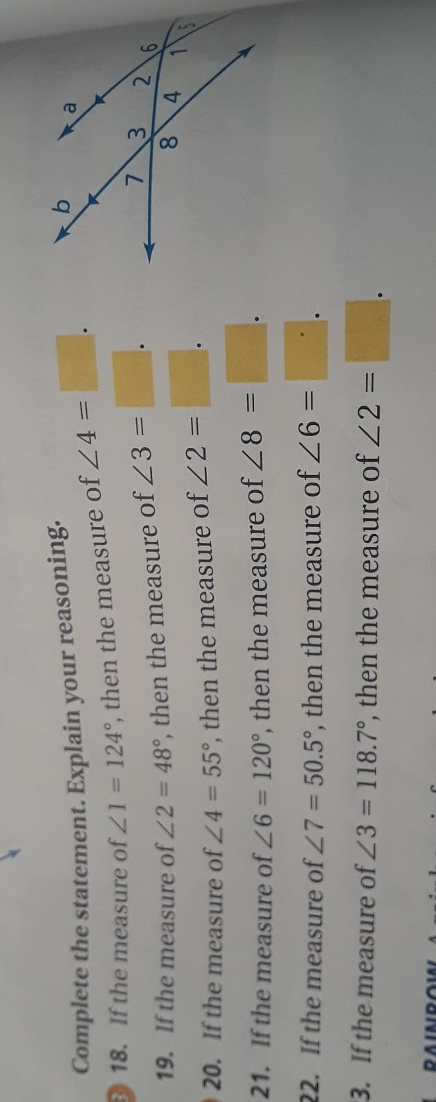22) if ∠7 = 50.5 , then ∠6= 50.5°.