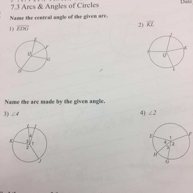 Part 1) The central angle is equal to ∠EOD+∠DOG or the central angle is equal to 360°-∠EOG