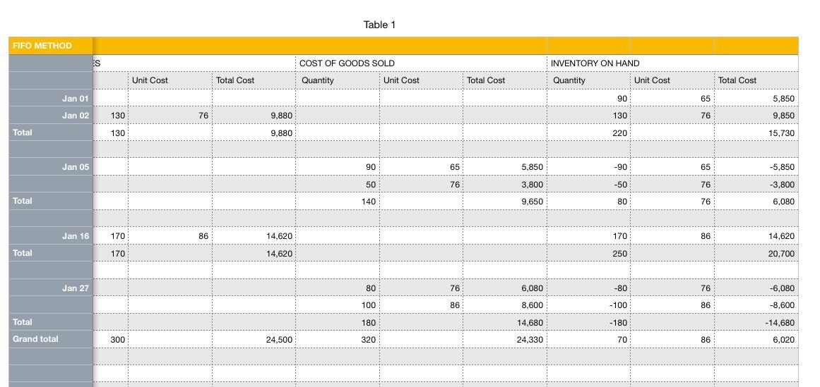 1. Using FIFO method of inventory costing, the cost of goods sold is computed as follows: