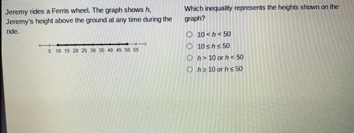 Thus, where h is the height, the inequality would be: 10 ≤ h ≥ 50.