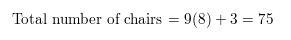 ft over. if you arrange the chairs in five rows of the same length he has 15 left over. how many chairs does Liam have?