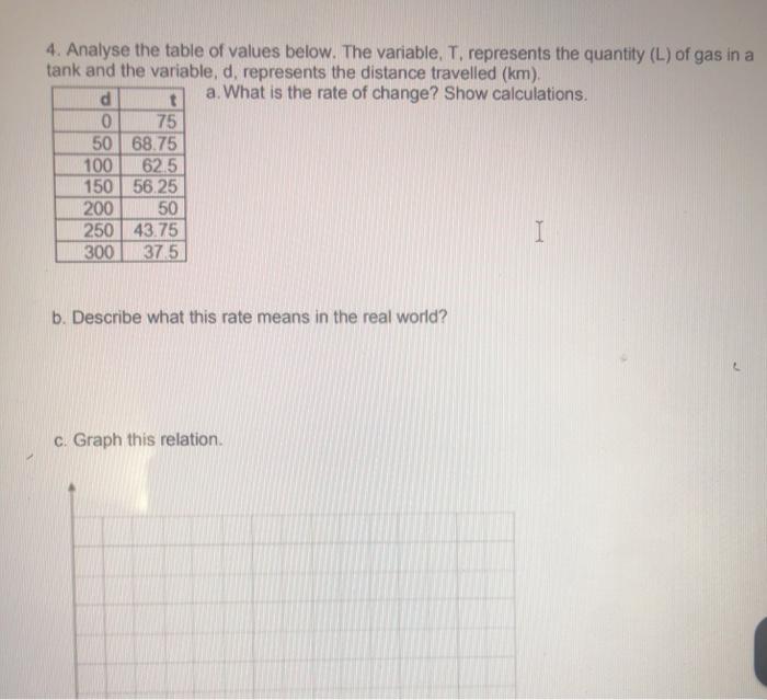 a) d is on the x axis and T is on the y axis, the rate of change is gotten using the points (0, 75) and (300, 37.5). Hence the rate of change (m) is: