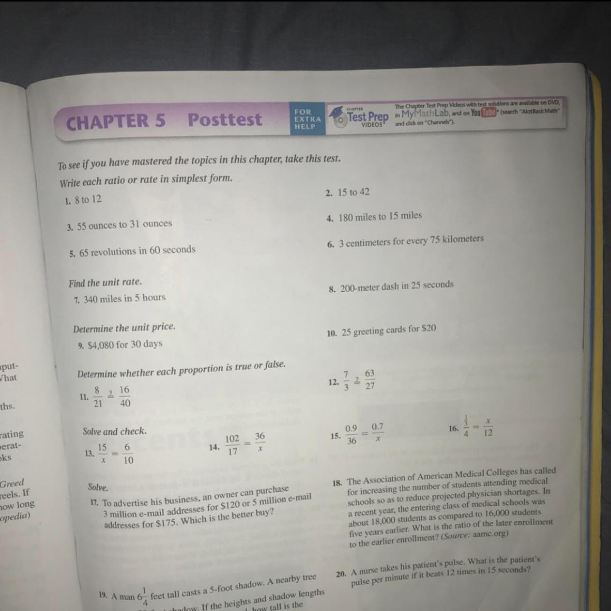 7) 340miles per 5hours is how many miles/hour → 340/5 or 68mph