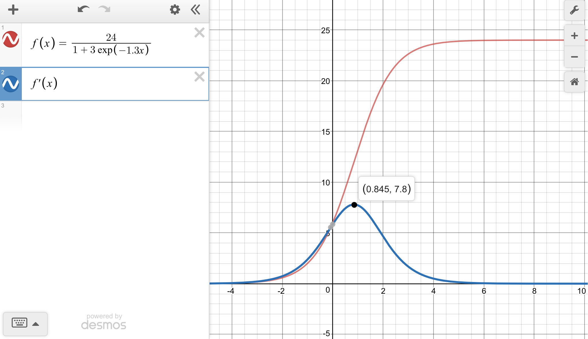 f'(x) = -93.6e^(-1.3x)/(1 +3e^(-1.3x))^2